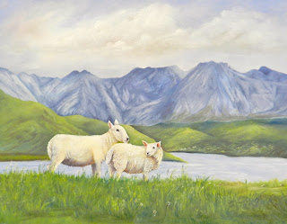 Here is the finished painting by one of my students. It's fabulous - it has lots of depth and movement. The sheep appear as if you could reach out and touch them. We were all very pleased with our paintings.