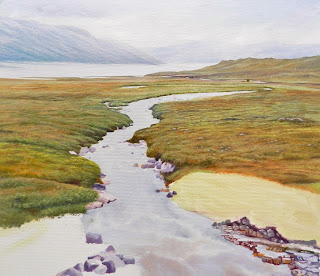 Progressing slowly but surely. The canvas we chose was 50x60 cm and there is a lot of grass. It's just a matter of covering the white with the same technique and colour scheme, making sure we are slowly coming into focus as we proceed down the canvas.