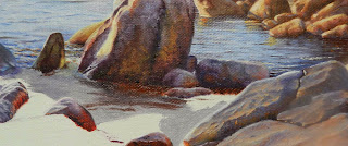 We finished the rest of the rocks that are in the water using the same technique as in Lesson No. 10. They have lots of colour and texture. Just remember your light source - coming in from the left in this case.