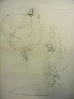 I've been wanting to paint my chickens - Ricca and Donna - for a while now. They are 2 beautiful white chooks who love to sit on the back verandah and make a mess, dig up my flower beds and lay their eggs in the cockatoo's cage!
