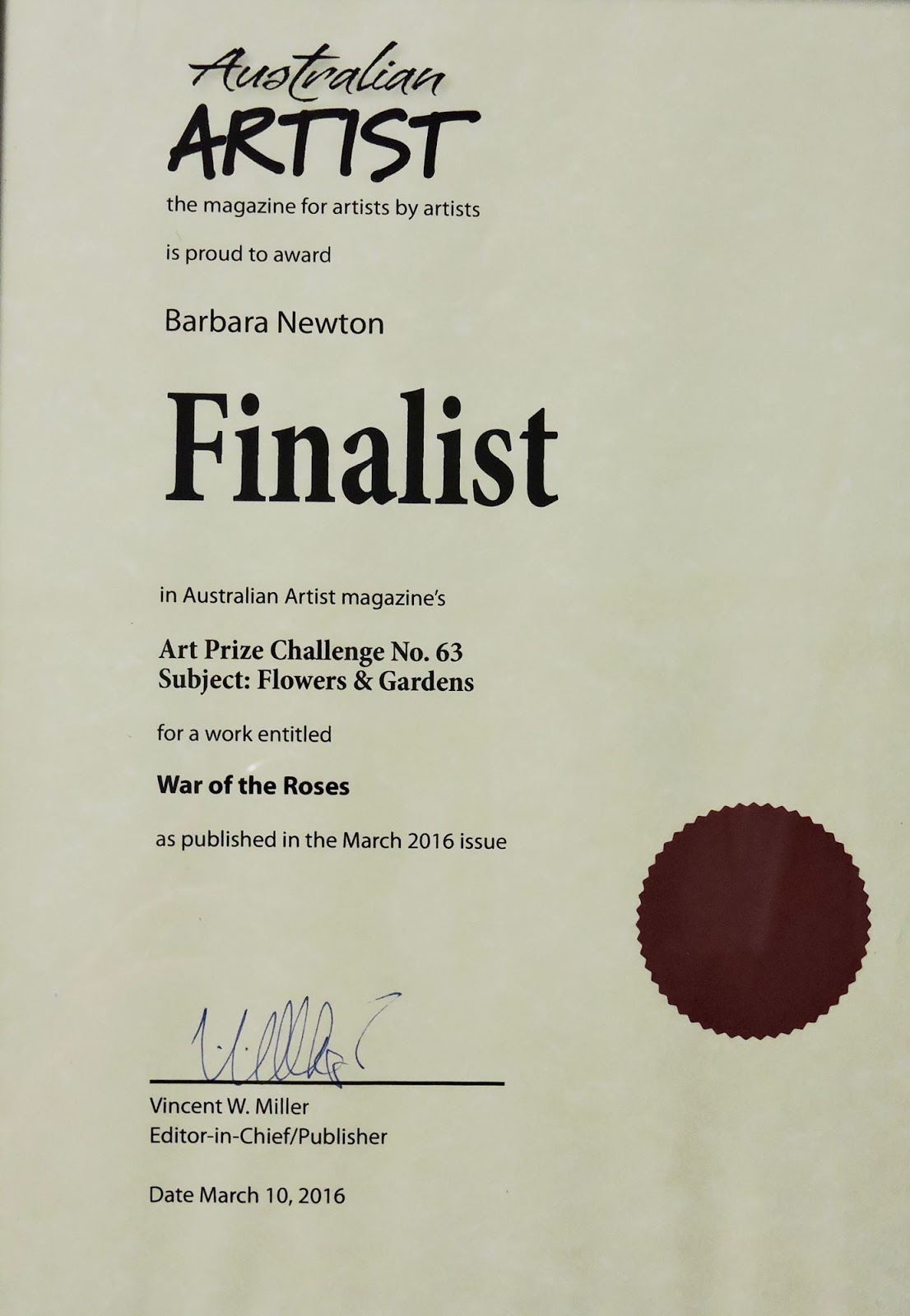 Australian Artist Finalist Award and a Special Recognition Award from L.S.&T.