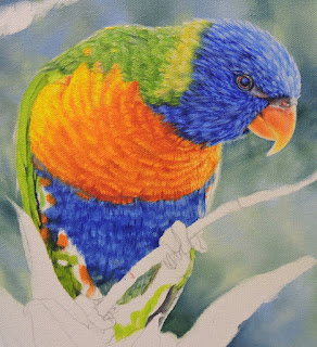 You can now see in this photo how important it is to get the direction of the feathers right. It gives the bird depth and solidity, especially in that orange chest. Remember to do just the one colour section at a time, so the colours don't become muddy.
