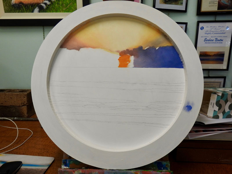 My son bought me this round board for Xmas last year.  I had to give it several layers of gesso before I started to use my oils.  It is very smooth and takes a bit to get used to as I always paint on canvas.  It is a little harder to blend the colours on the board, and by the looks of it, will need to do a second layer.