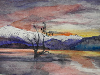 Linda has been doing a bit of watercolour lately.  This 15x20cm painting was completed in a couple of days, showing her skill in wet-in-wet technique, using transparent colours to show a simple, clean work of art.  Great job Linda.