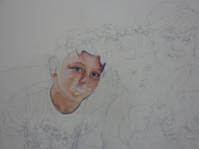 I'm just loosely making my way around the face with the different tones and hues for now, with a very thin layer of paint. No doubt I'll be going over this little face quite a few times.
